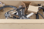Demontieren Sie das Vorderrad, den Lenker, die Pedalen, den Gepäckträger sowie den Sattel und legen Sie die einzelnen Teile gut gepolstert gemeinsam mit dem Rahmen in den vorgesehenen Karton.