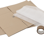 Klebeband, Luftpolsterfolie und einige Stücke stabilen Kartons